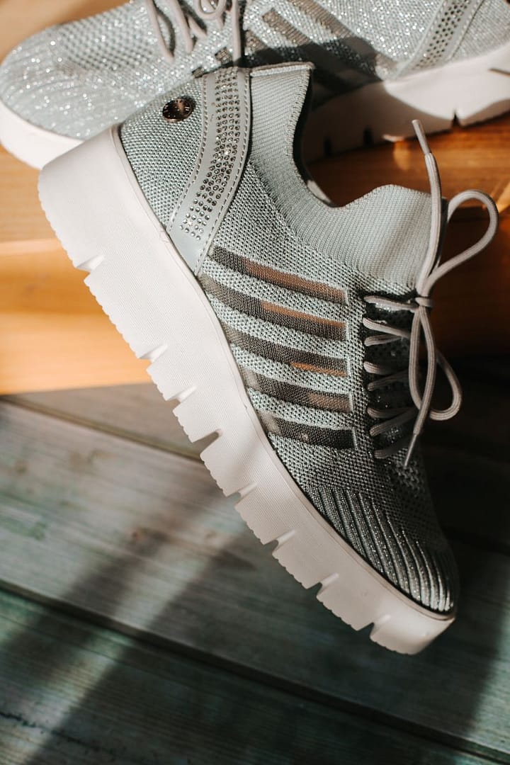 Découvrez les chaussures Bernice Light Grey Silver de Bernie Mev pour un parfait maintien de vos pieds. Avec une tige en textile sans couture, ces chaussures vous garantissent un confort et une flexibilité exceptionnels. La semelle intérieure à mémoire de forme renforce la sensation de légèreté et offre un amorti optimal grâce à l’épaisseur de la mousse, réduisant ainsi l’impact des chocs et ménageant les articulations. Et pour ajouter une touche d’éclat à votre tenue, la semelle extérieure en caoutchouc est ornée de magnifiques strass qui illuminent votre look. La marque est certifiée VEGAN par l’organisme Peta, et tous nos modèles sont livrés dans une jolie boîte colorée. Optez pour le confort et le style avec les chaussures Bernice Light Grey Silver.